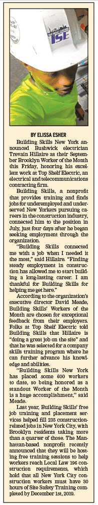 Bronx Times, BUILDING SKILLS NY’S WORKER OF THE MONTH